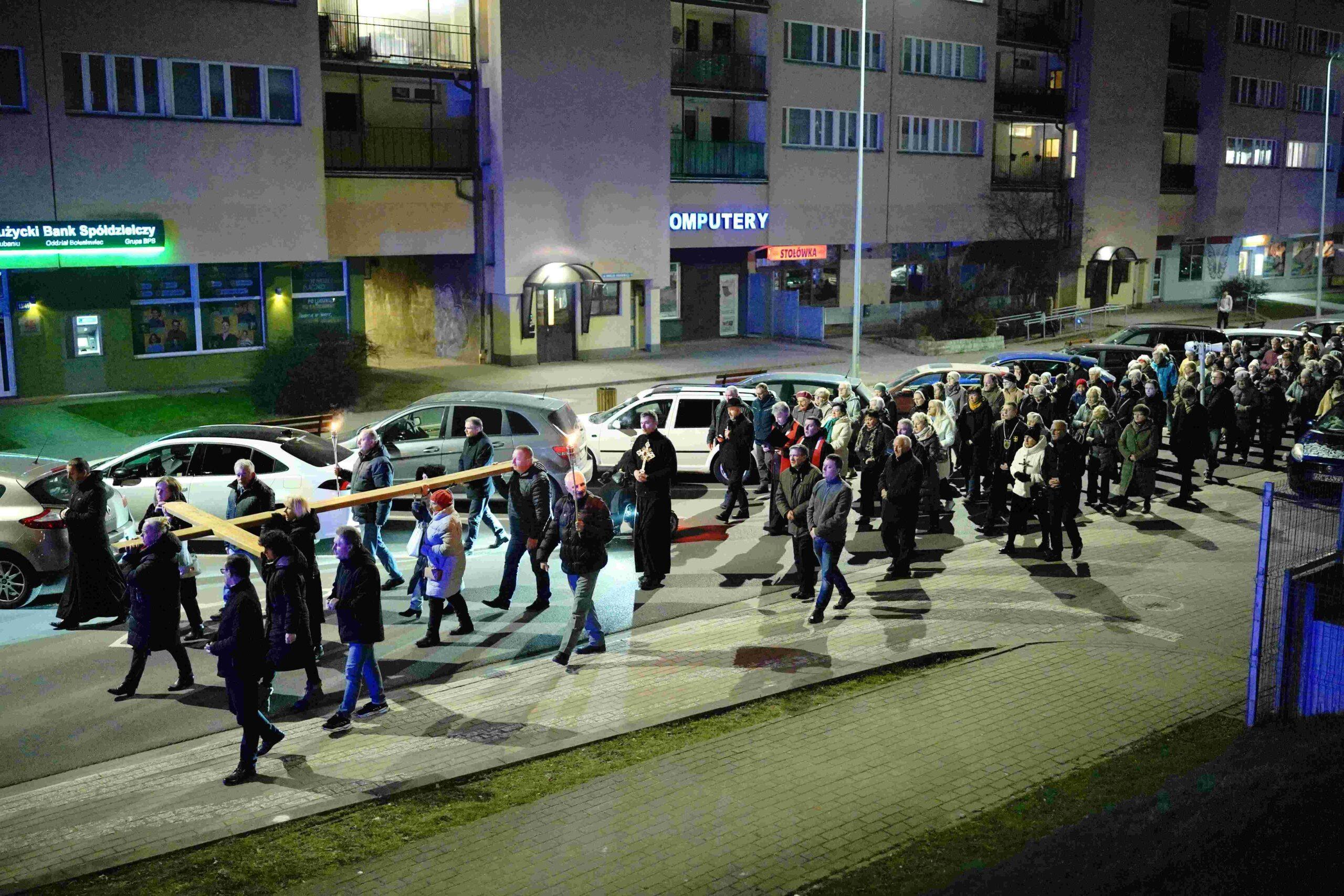 Ważnym wydarzeniem rekolekcyjnego skupienia była piątkowa droga krzyżowa ulicami parafii, podczas której korzystaliśmy z rozważań bł. Michała Sopoćko.