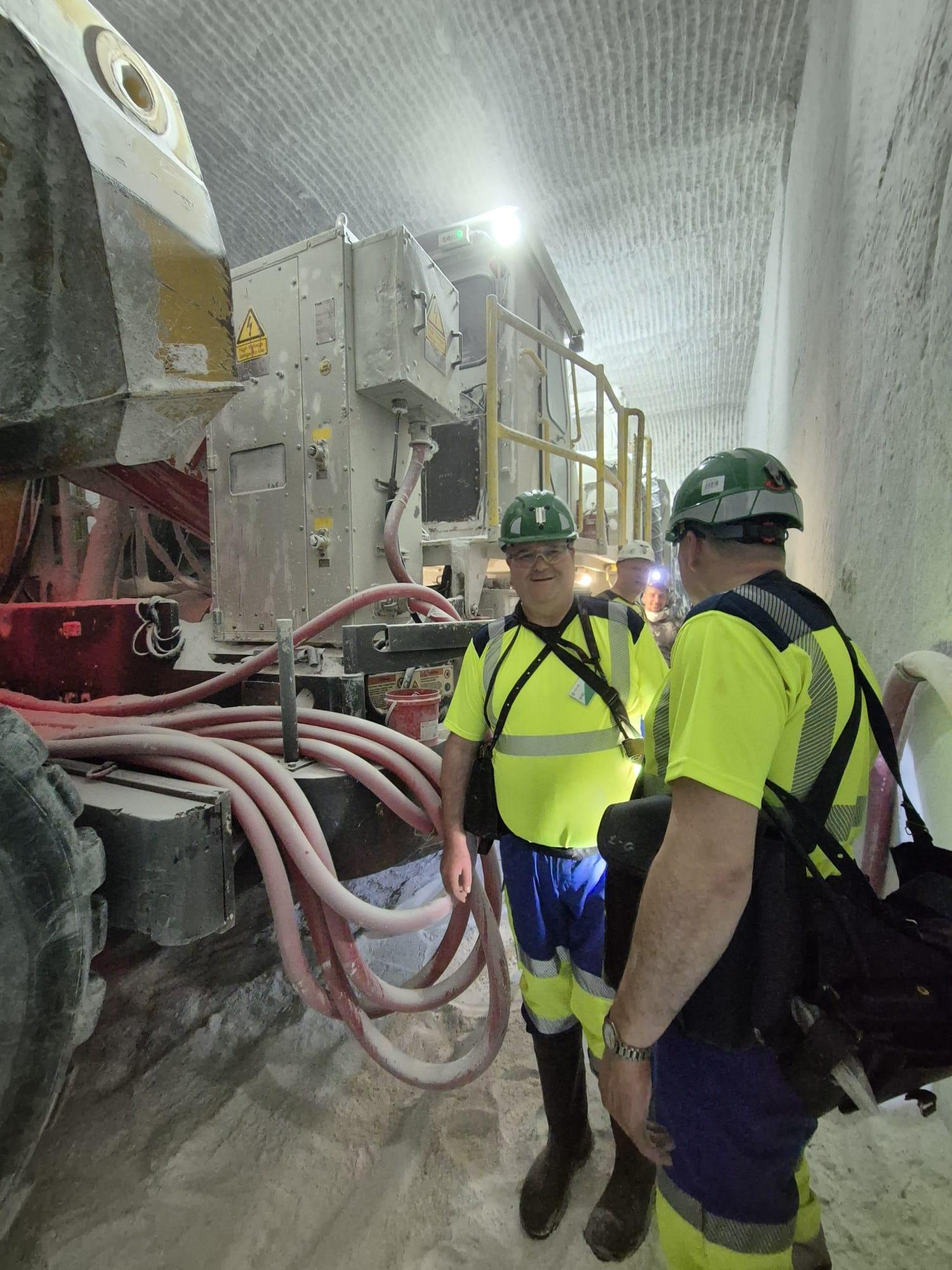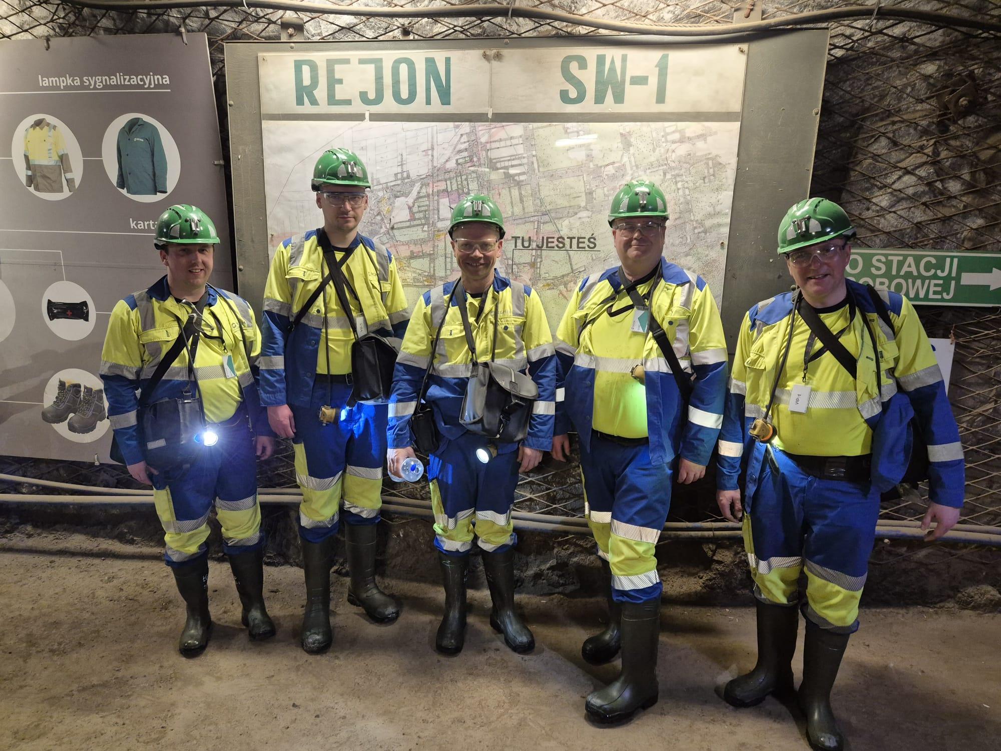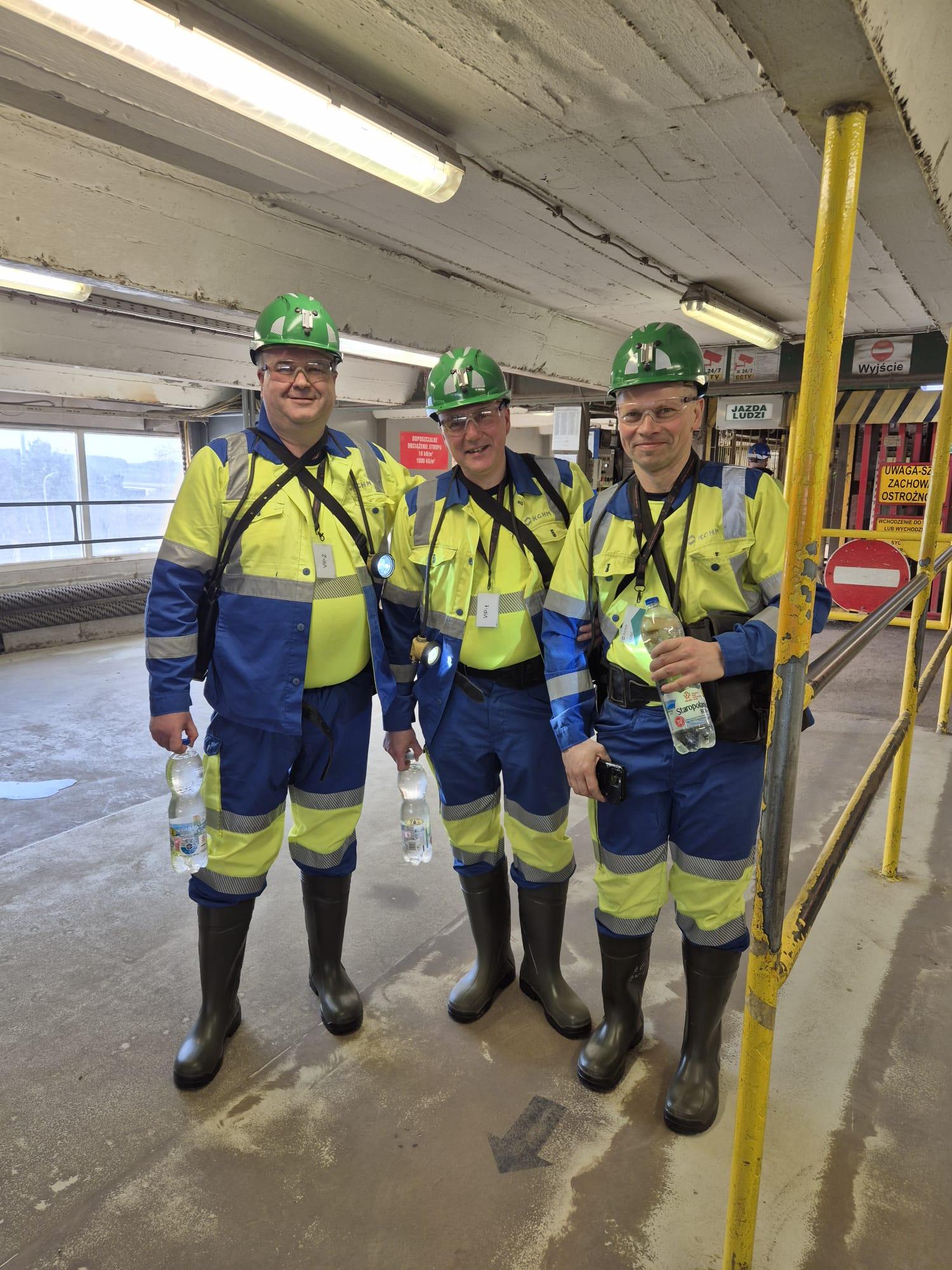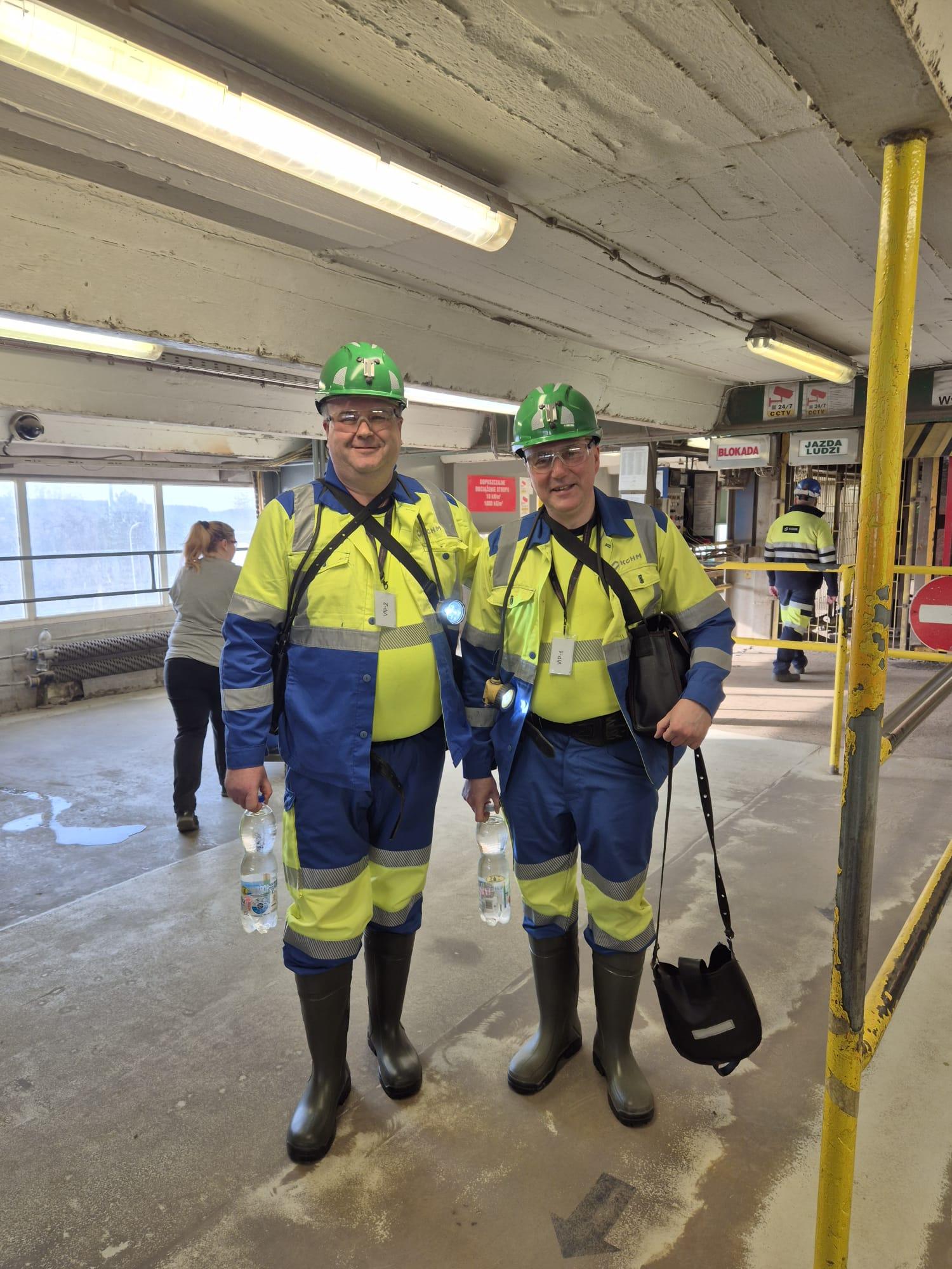 W środę 11 marca 2026 z samego rana udaliśmy się na kopalnię. Po przejściu specjalnego szkolenia z obsługi aparatu tlenowego i po ciekawej prelekcji Pana Dyrektora o zarządzanej przez niego kopalni udaliśmy się pod opieką wyznaczonego nadsztygara 700 metrów pod ziemię. Najpierw odwiedziliśmy oddział wydobywający sól. Choć to kopalnia miedzi, ale znajdują się w niej bogate złoża soli, która po wydobyciu trafia na nasze drogi, gdy przyjdzie zima. Po zapoznaniu się z techniką wydobycia soli zjechaliśmy specjalnym wozem na głębokość 1000 metrów, by zapoznać się z techniką wydobycia miedzi. Byliśmy na samym przodku i mogliśmy zobaczyć w jak ciężkich warunkach, zwłaszcza duża wilgotność i temperatura, pracują górnicy. To budzi podziw i wzmacnia szacunek do tego rodzaju pracy. Po kilku godzinach wędrówki kopalnianymi korytarzami wyjechaliśmy na powierzchnię, by podzielić się wrażeniami i spostrzeżeniami z gospodarzem naszej wycieczki – dyrektorem kopalni.