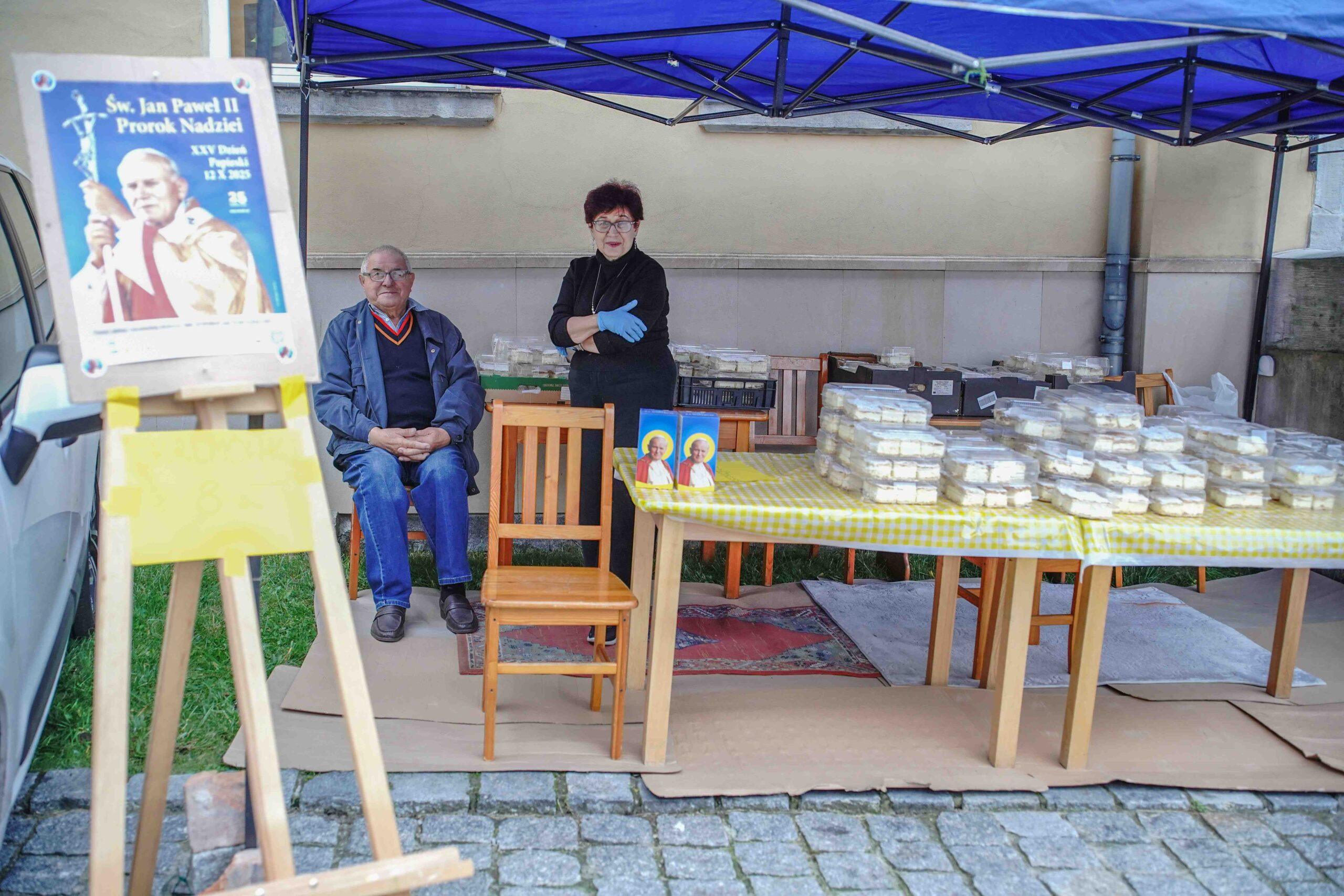 Po każdej Mszy św. Parafialny Zespół Caritas prowadził kiermasz papieskich kremówek. Ludzie chętnie korzystali, by w domu przy dobrej kawie i kremówce powspominać naszego Ojca Świętego.