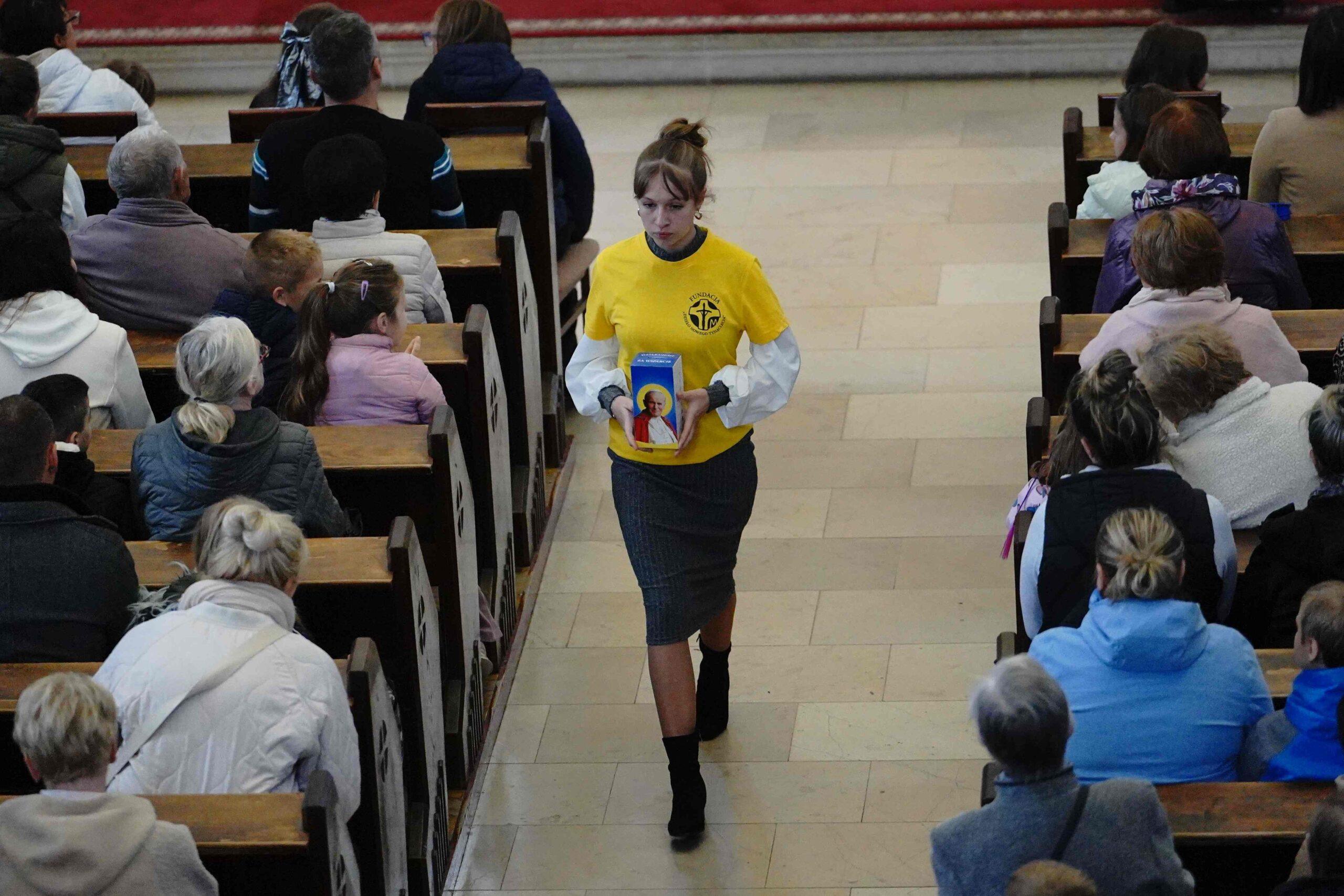 Już po raz dwudziesty piąty obchodzony był w całej Polsce Dzień Papieski upamiętniający postać św. Jana Pawła II. W bolesławieckiej Bazylice Mniejszej był on nieco inny niż poprzednie, ponieważ od kilku miesięcy nasza parafianka Joanna Żurawek jest stypendystką Fundacji Dzieła Nowego Tysiąclecia. Na każdej Mszy św. niedzielnej Asia wyświetlała przygotowaną prezentację na temat Fundacji i dzieliła się z wiernymi wrażeniami z dwóch obozów dla młodzieży, w których zdążyła już uczestniczyć. Zaangażowała się również w liturgię słowa, a także wraz ze swoją siostrą Magdą prowadziły kwestę na rzecz Fundacji. To było bardzo ważne dla parafian, ponieważ mogli usłyszeć jak wspaniałą sprawą jest Fundacja i jak mocno dba o zdolną młodzież. Wierni do puszek złożyli kwotę 6963,2 zł.