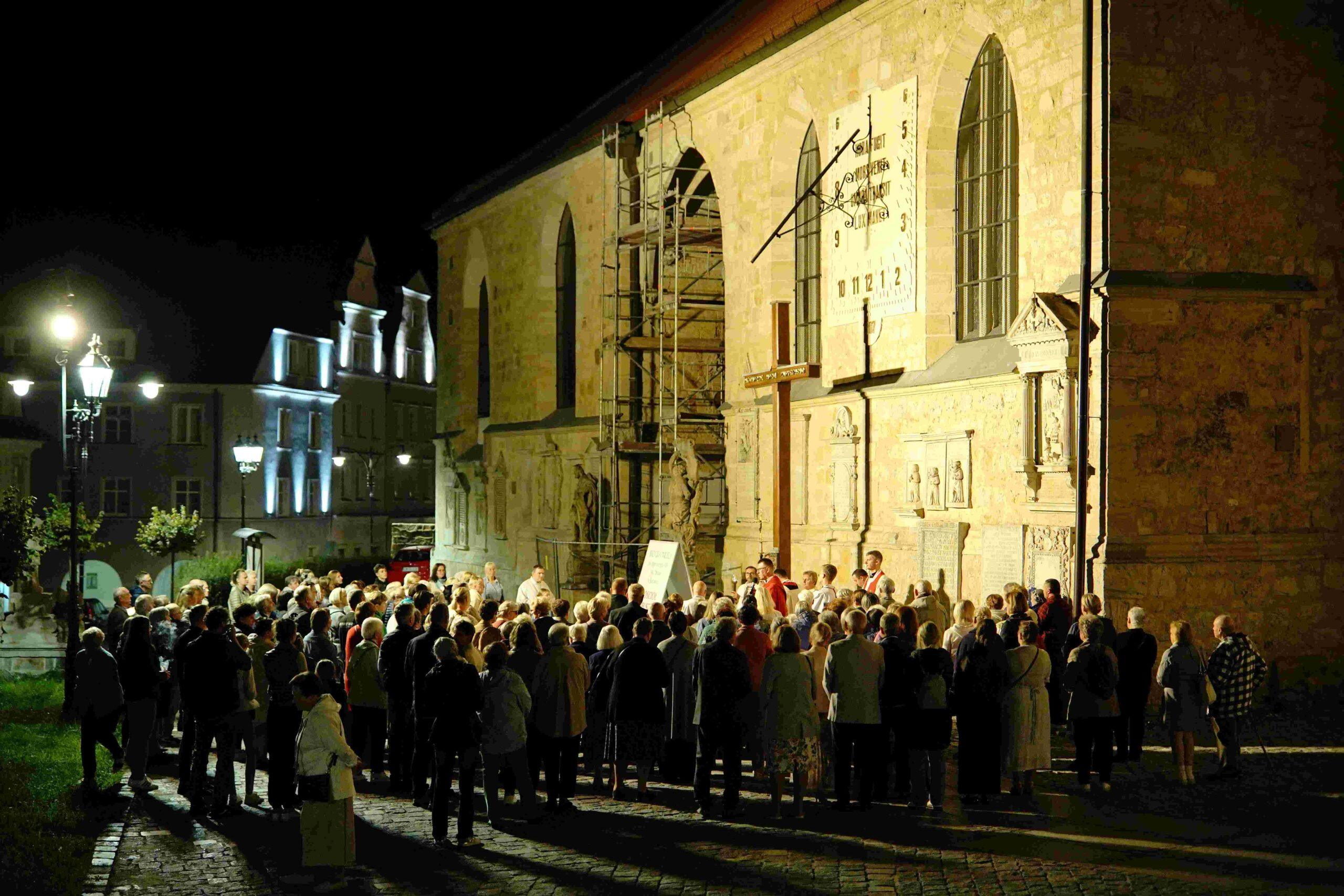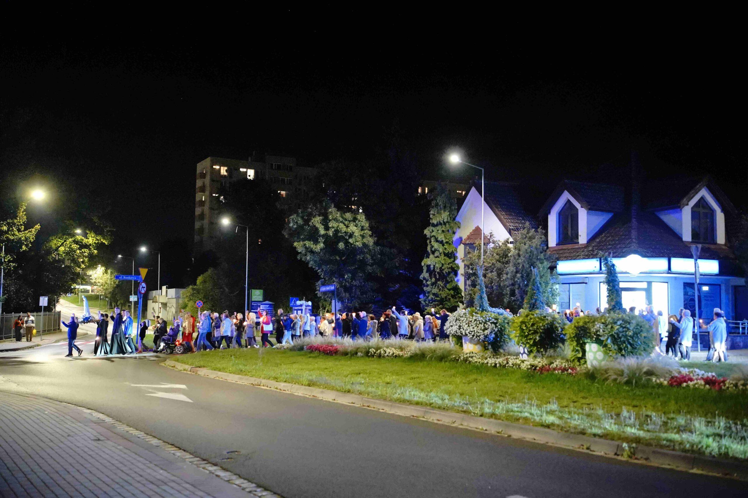 Misje też polegają na tym, by opuścić mury świątyni. Dlatego odbyły się trzy wieczorne procesje różańcowe: dwie ulicami Bolesławca i jedna w Chościszowicach. Niezapomniane przeżycie, gdy dziesiątki osób na ulicy modli się różańcem, a misjonarz wygłasza katechezy. Słowo Boże, modlitwa i krople wody święconej użyźniały glebę naszej parafii. Wszystko po to, by ratować ludzi przed piekłem i prowadzić do nieba. W środowy wieczór zgromadziliśmy się przed bolesławieckim szpitalem św. Łukasza, by omodlić chorych i personel, a w czwartkowe popołudnie sprawowana była Msza św. zakończona procesją na cmentarzu komunalnym. Natomiast w piątkowy wieczór odprawiona została Droga Krzyżowa z odnowieniem przyrzeczeń chrzcielnych przy krzyżu misyjny. Ostatni dzień związany ze spowiedzią i błogosławieństwem misyjnym stał się też okazją do wysłuchania koncertu pieśni maryjnych Pawła Dudzika z Krakowa. Było to muzyczne podsumowanie tygodnia z Maryją.