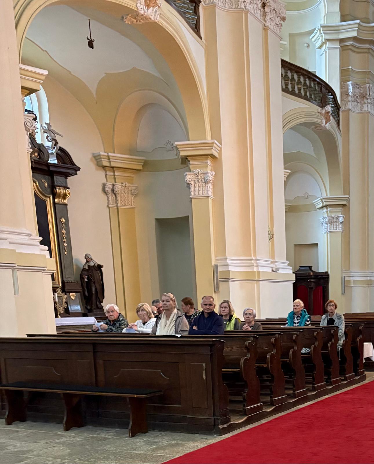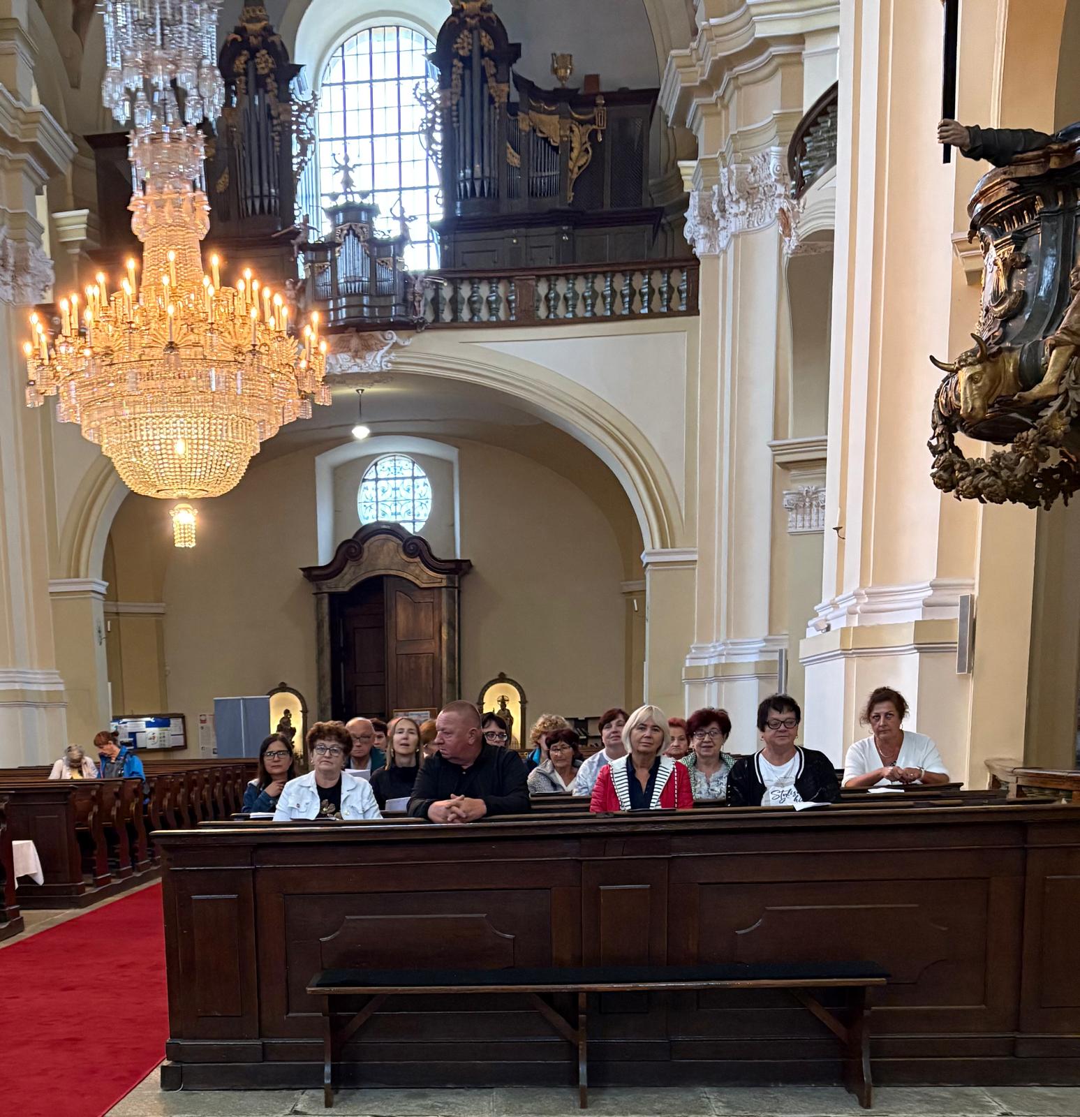 Po Mszy św. wysłuchaliśmy historii tego uroczego miejsca, a następnie pani zakrystianka oprowadziła nas po świątyni od krypty aż po chóry, a nawet doszliśmy do organów. Poznaliśmy wiele ciekawych miejsc i mogliśmy z bliska podziwiać piękne malowidła na stropie. Po chwili wolnego czasu na kawę przejechaliśmy do Pobiednej, gdzie dzięki życzliwości ks. Grzegorza Ropiaka i miejscowej pani sołtys zorganizowaliśmy w remizie strażackiej posiedzenie Rady przy pieczonej kiełbasce i dobrym ciastku. Umocnieni modlitwą, Eucharystią, nawiedzeniem świętego miejsca i stworzoną wspólnotą powróciliśmy popołudniu do Bolesławca. Kolejne wyjazdowe posiedzenie Rady Parafialnej planujemy w opactwie cysterskim Neuzelle w Niemczech w roku 2026.